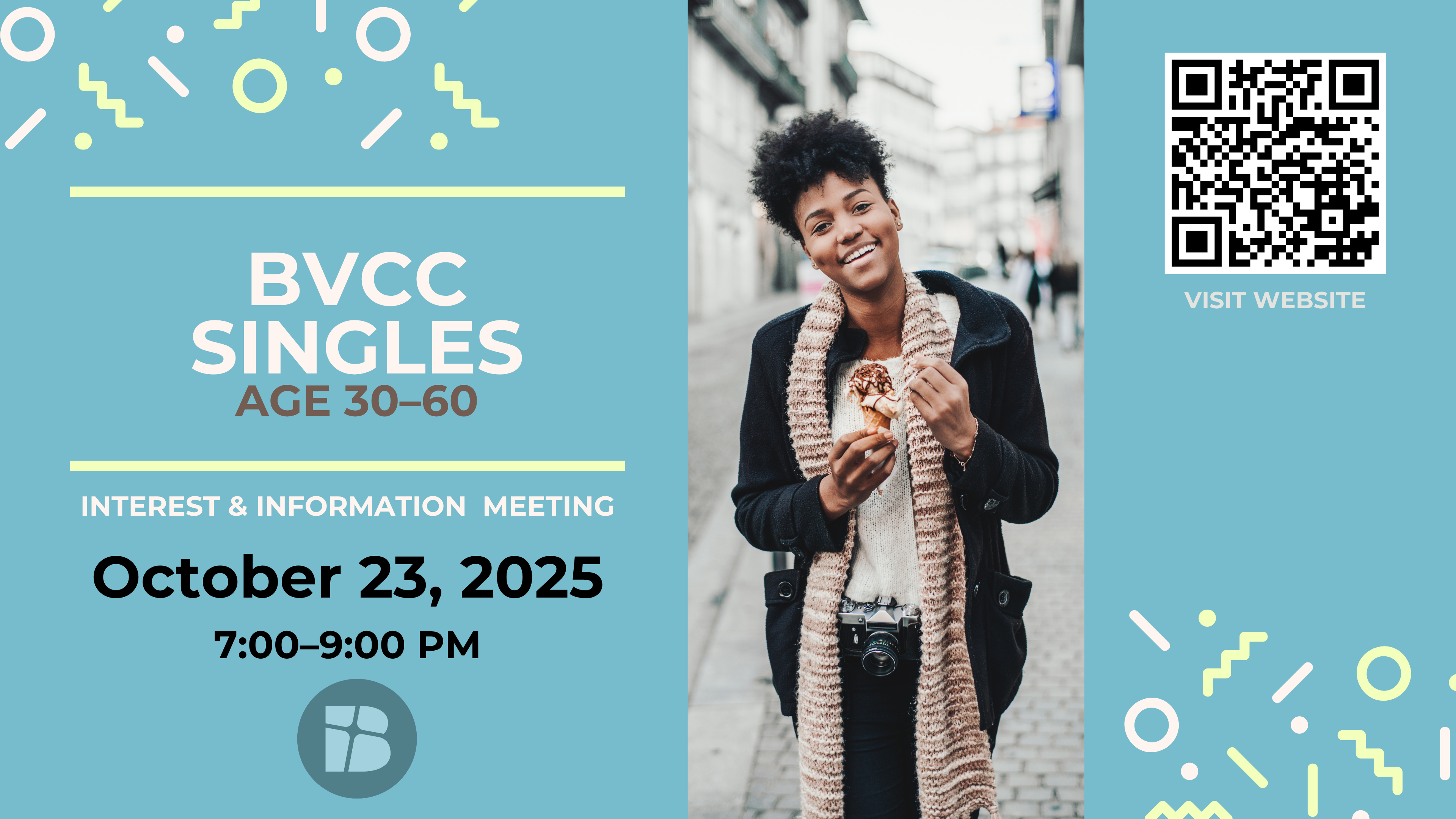 Come join us for some snacks and see what is in store for our new BVCC Singles ministry. Just show up.